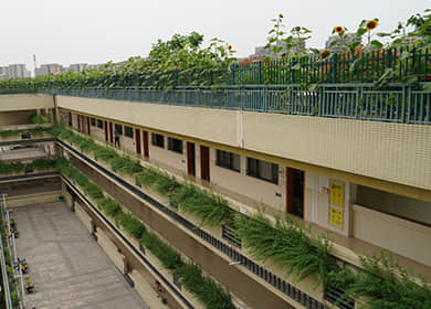 <p style="text-indent:2.2em;">學校是城市的重要一部分,必須與城市在空間上、功能上有連續性和互補性。美化學校,對提高學校環境,塑造良好的校園公眾形象,提升學校外部形象,有著直接的關系。</p><p style="text-indent:2.2em;">學校的景觀提升,追求校園生態環境、社會、經濟的整體良好效益,需做到點(景點綠化)、線(道路綠化)、面(大塊綠化)的有機結合,在校園中形成多層次、豐富多彩的綠色環境。</p><p style="text-indent:2.2em;">立體綠化,有助于學校利用各種載體(包括燈桿、護欄、墻面、屋頂等),不占用土地面積下有效增加綠化面積,提升學校景觀的立體感。屋頂菜園是學校立體綠化的重要形式,不僅能為學生提供綠色蔬菜,能帶來良好的經濟效益,也能保護建筑物等。</p>
